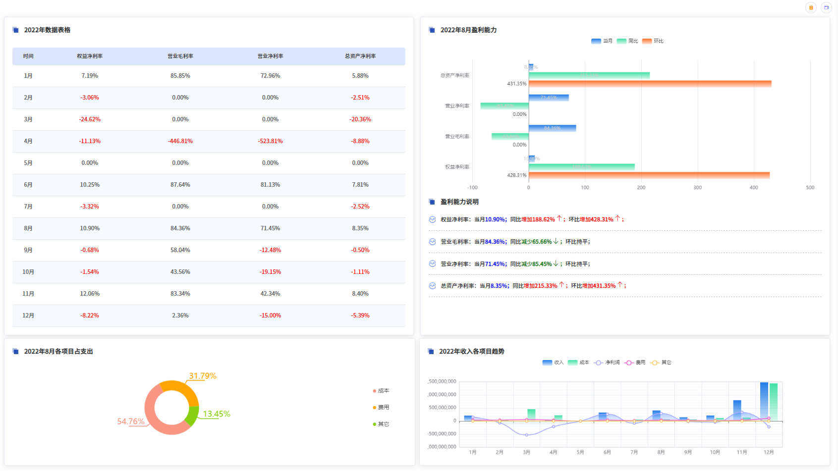 根据数据建模抽取的用户数据,分析企业盈利能力各项指标